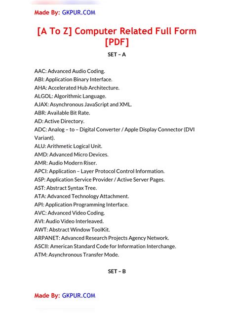 a to z full form computer programming