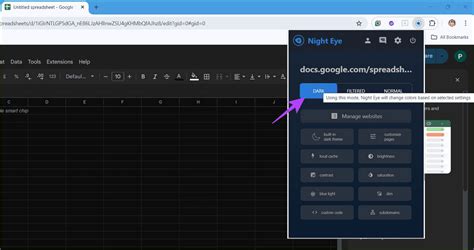 how to change google sheets to night mode