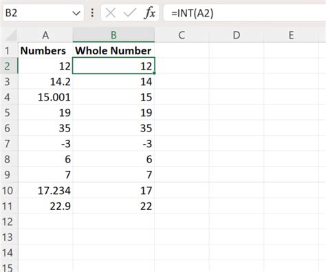 how to make values whole numbers in excel
