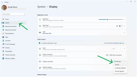 how to rotate screen in display settings