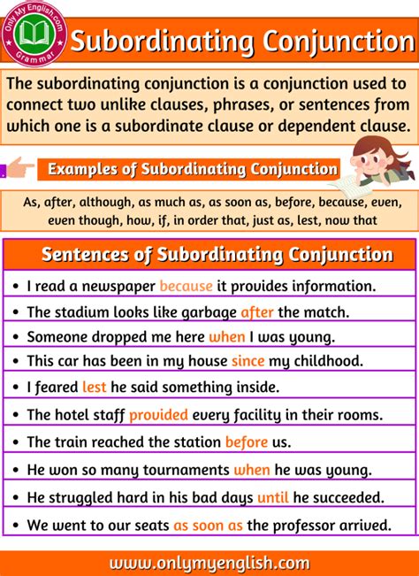 two examples of subordinating conjunction